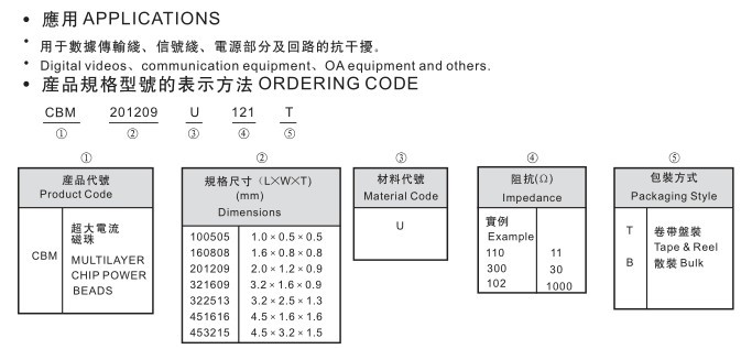 CBM片式磁珠高阻抗,無引線,符合EIA標準