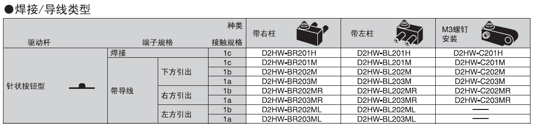 針狀按鈕型 D2HW- ![]() ![]() ![]() |