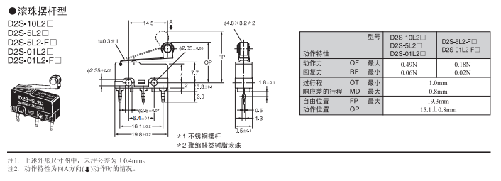 具有較好的耐焊劑性的超小型系列 焊劑無法進入的一體成型端子結(jié)構(gòu)。 動作位置(OP)的精度高達±0.25mm,周邊設(shè)計和定位簡單。 采用了橫向操作中也能方便動作的針狀按鈕型。