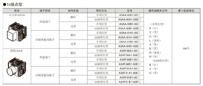 A3A系列 按鈕開(kāi)關(guān) 大容量、緊湊型、小型方體型按鈕開(kāi)關(guān)