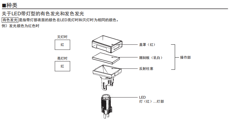 長20mm、 圓型f12系列 高亮度的均一表面發(fā)光。 圓形便于開孔。 形狀小巧,操作感好。