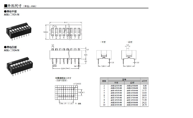 A6E-□104-N 歐姆龍開關 滑動型盒型DIP開關