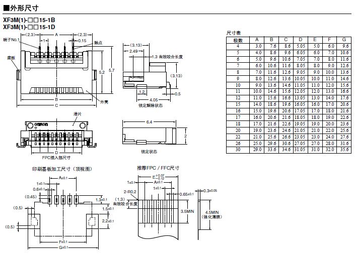 XF3M 旋轉后鎖結構(端子間距0.5mm、1.0mm、雙面觸點類型)