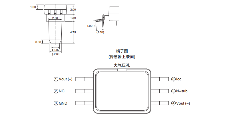 超小型、低功耗的MEMS表壓傳感器 長6.1mm×寬4.7mm×高8.2mm的超小型。 比電容式壓力傳感器更優(yōu)異的電氣特性。 測量壓力范圍為0~37kPa。 偏置電壓:-2.5±4mV 量程電壓:31.0±3.1mV 0.2mW的低功耗。 受溫度影響小。 量程電壓:±1.0 %F.S. 偏置電壓:±3.0%F.S.